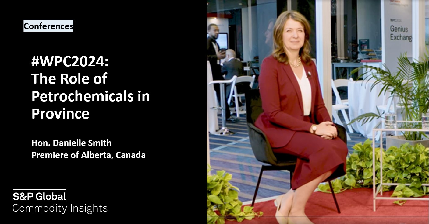 Alberta premier Danielle Smith highlights the critical role petrochemicals play in Alberta’s economy at the World Petrochemical Conference by SP Global in Houston. She highlighted the low-cost gas and feedstock advantage, available carbon capture infrastructure, and steps Alberta is taking to ensure hydrocarbons are upgraded to higher-value chemicals and derivatives in the province. WPC took place from March 18-22 and LIVE is your all-access pass to the conference. Check back for more chemical insights and cutting-edge coverage.